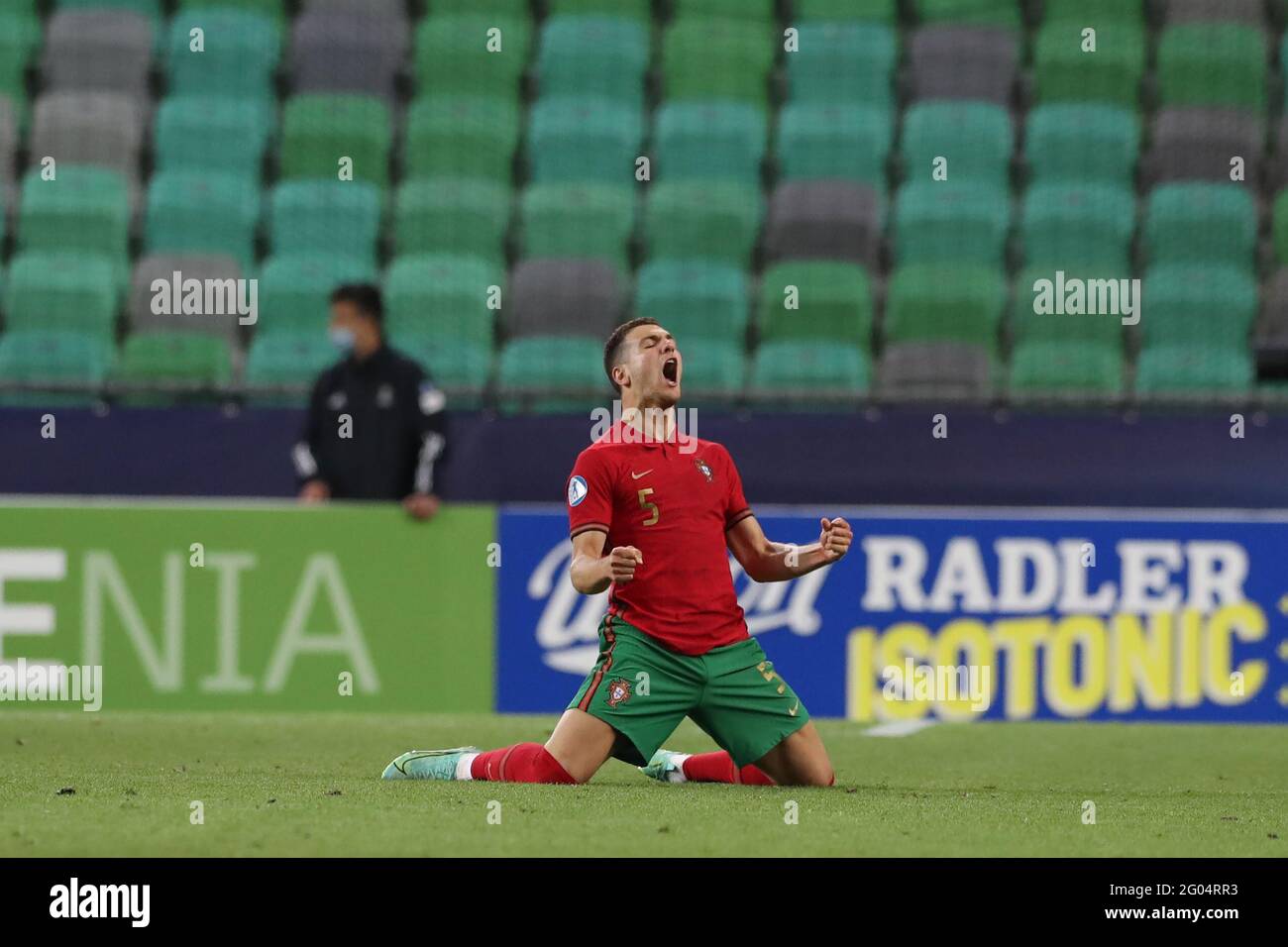 Ljubljana Slovenia 31st May 2021 Diogo Dalot Of Portugal Celebrates After Team Mate Francisco Conceicao Scored To Give The Side A 5 3 Lead In Extra Time Of The Uefa U21 Championships 2021